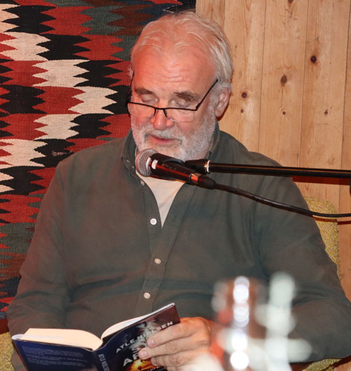 Staalesen snakket bl.a. om hans siste bok «Forfulgt av død», hvor Varg Veum får førerkortet sitt beslaglagt. Det er inspirert av en virkelig historie, som vi fikk høre om. Han snakket også om sin historiske Bergenstrilogi, som ble til fire bøker.