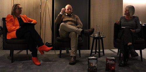På matmenyen sto Lakseceviche, grillet andebryst og sjokoladefondant. Arrangementet var helt fullt. I salen var også forfatterne Jørn Lier Horst, John Unsgård, Ragna Dahl, Jonas A. Larsen, Audhild Hjellup Lønne og Frode Eie Larsen, og selvsagt leder av arrangementet, og forfatter Myriam H. Bjerkli.