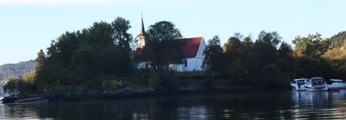 Fra badstua ser man rett over på Hosanger kirke.