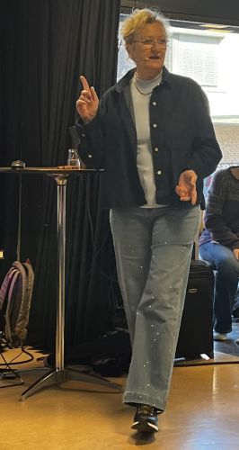 Trude Teige avsluttet arrangementet med et forrykende foredrag. Hun fortalte om bakgrunnen til sin mormor-trilogi, ting hun oppdaget under researcharbeidet, og hvordan karakterene ble til. Dette er en historisk serie som tar for seg både jentr som giftet seg med tyske soldater, og ble fratatt sitt norske statsborgerskap og "russerfanger", som det var mange av i Norge, men som vi har hørt lite om.