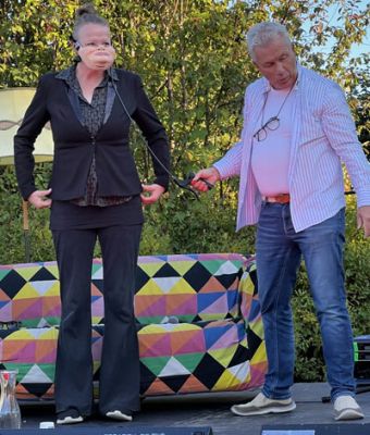 Jan-Robert Henriksen hadde et morsomt buktalershow med ordvert Tuva Adriane Lønne