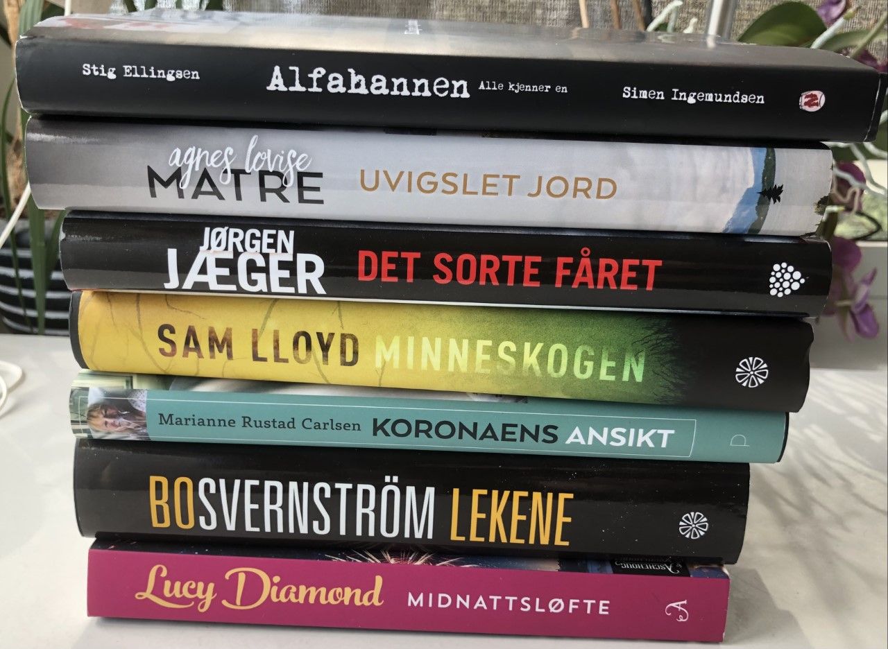 Denne måneden ble det lite bøker i forhold til normalt. Bare 5 krimbøker og 3 andre romaner, derav 1 ebok. 8 bøker totalt. Jeg vet ikke helt hva som skjedde, jeg tror bare at jeg ikke helt motivasjon og energi nok denne måneden.