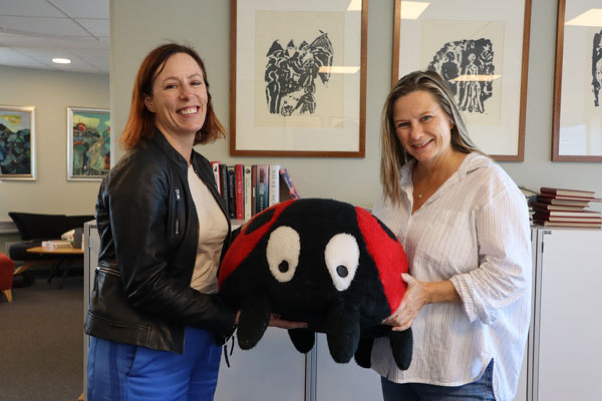 Redaktør Runhild Skjølaas og administrerende direktør Ingeborg Volan trives godt blant Bokklubbens bøker.