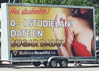 «Hei studenter!  0,- i studielån? Date en sugardaddy».