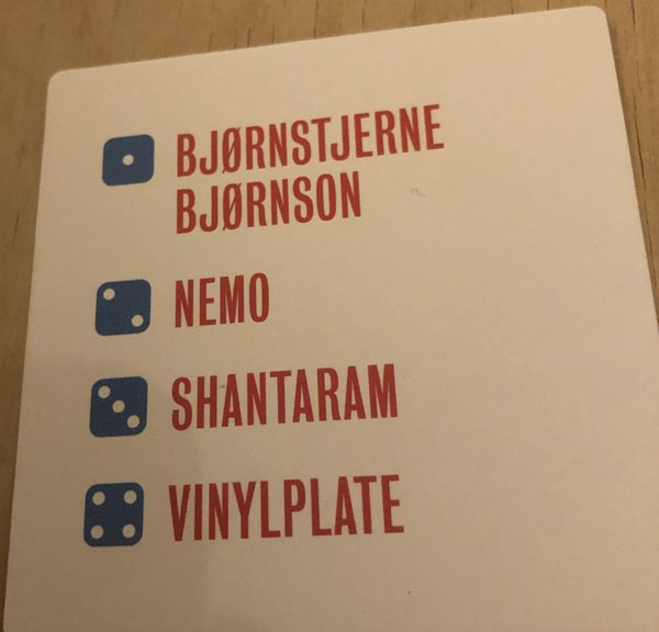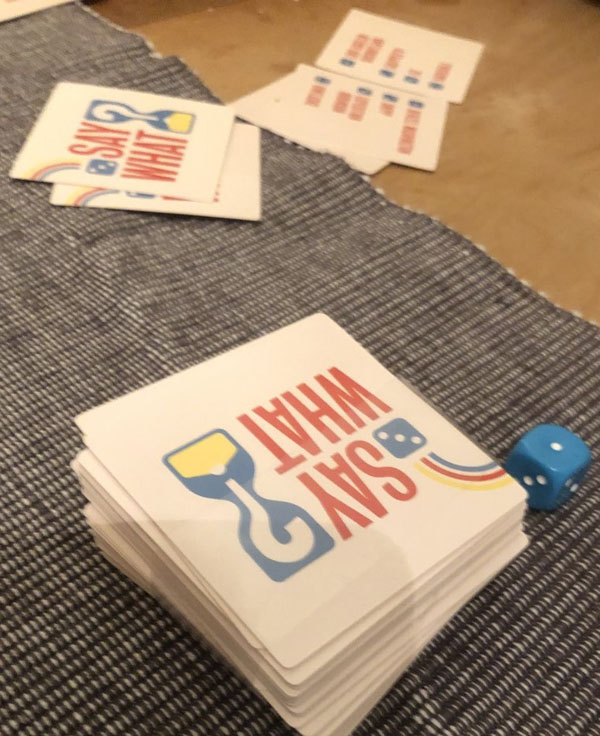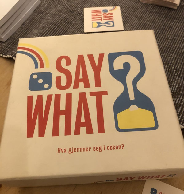 Dette synes vi var morsomt. Det ble en koselig spillerunde uten stress med tiden - og med mye latter. Vi spilte helt til den ene bunken med kort var brukt opp. Ordene var hovedsakelig kjente. Ordene under ting var forholdsvis enkle. Personer kunne være vanskelig, men var også det som var gøyest.